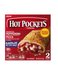 These microwaveable Hot Pockets are made with sliced beef and cheddar cheese with savory sauce, wrapped in a crust inspired by sesame seed buns. This delightful beef 'n cheddar inspired frozen snack features 9 g of protein per serving and delivers craveworthy flavors. This microwave food is easy to prepare, making it a great choice when you are short on time or on-the-go.